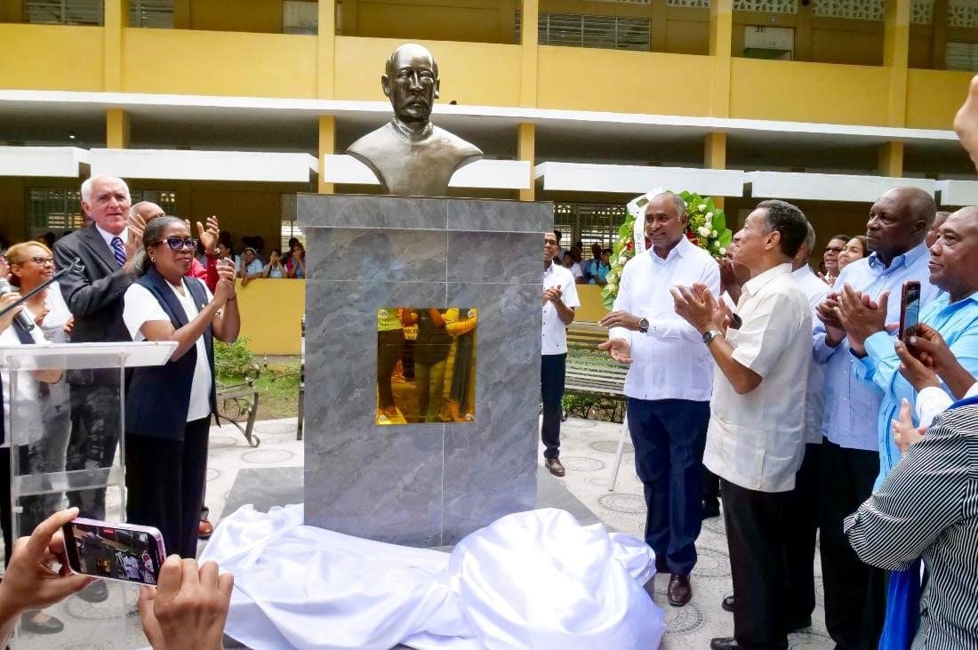 Develan busto de Francisco Gregorio Billini en liceo de Baní