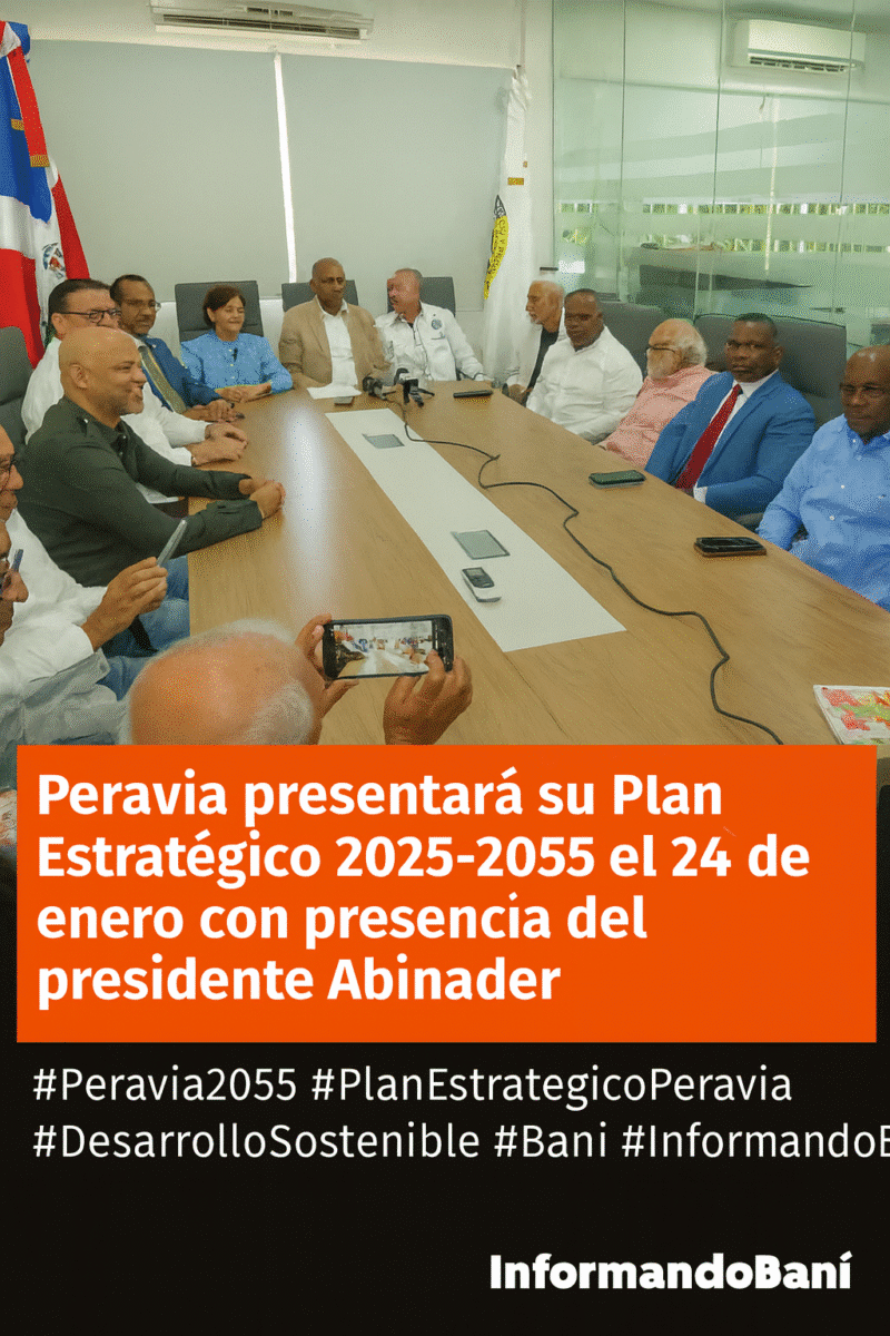 Peravia, R.D. — El comité gestor del Plan Estratégico de Desarrollo Sostenible Peravia 2025-2055 anunció este lunes el calendario oficial de socialización, consulta y presentación del proyecto, que culminará el 24 de enero de 2026 con un acto en el polideportivo de Baní, encabezado por el presidente Luis Abinader.